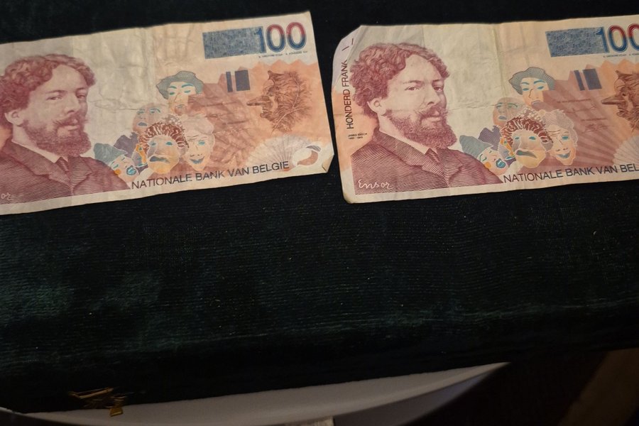 Belgiska sedlar med värdet 100 Franc.