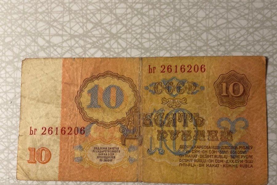 Detta är en sedel från Sovjetunionen med ett värde av 10 rubel. Sedeln har serienummer br 2616206.