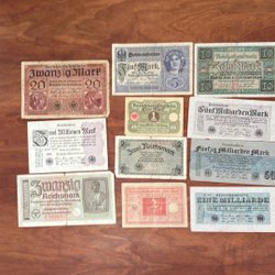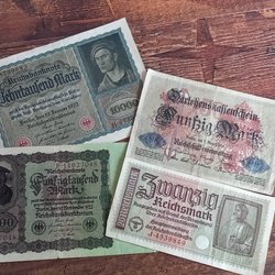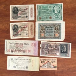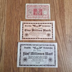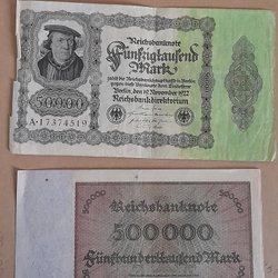 Gamla Tyska sedlar. 50000 Mark från 1922 vikt (se bilden) och 2000000 Mark från 1923 ovikt sedel. Kan även hämtas