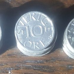 - Kaffe/choklad fläck på baksidan av 10.000 sedeln.