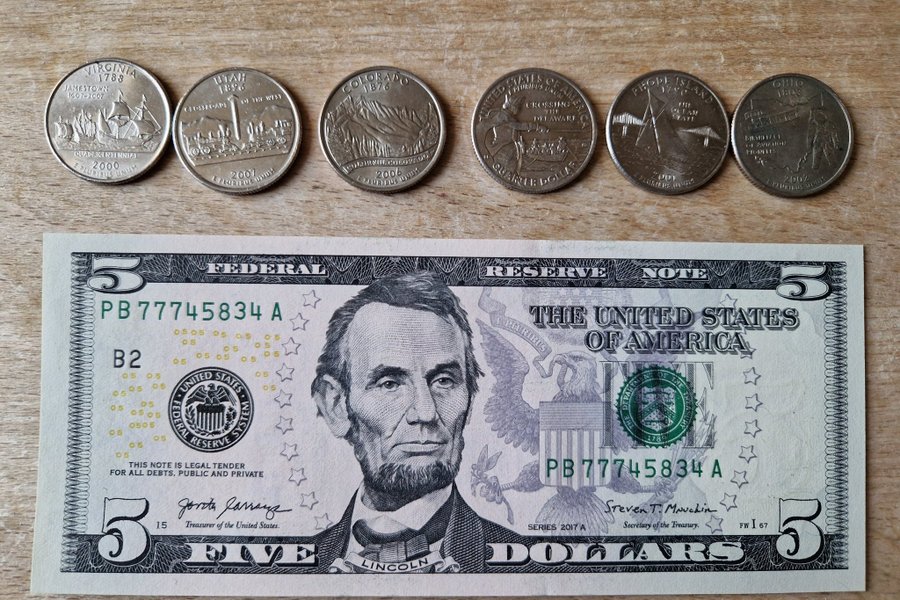 5 dollar seddel + 6 Quater
