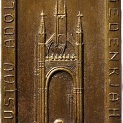 Konungens vänstervända lagerkrönta bröstbild, under harneskärmens avskärning gravörens initialer: "C.M.M.". I omskriften: "GUSTAVO II ADOLPHO S.G.V.R.DIE VI NOV. MDCCCXXXII"