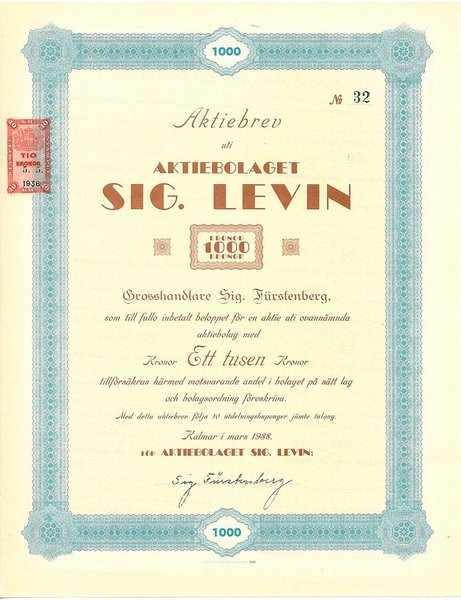 Sig. Levin, AB 1.000 kr, 1938, Kalmar, Referens: GA.3830