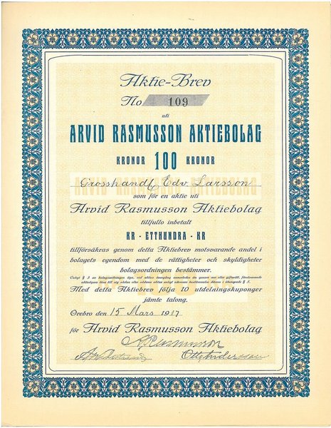 Arvid Rasmusson AB, 100 kr, 1917, Örebro