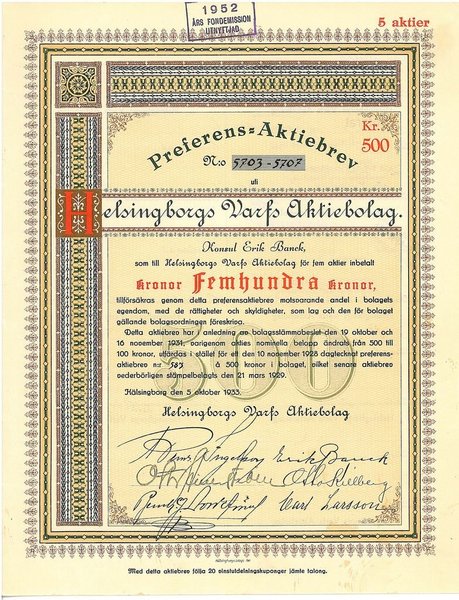 Helsingborgs Varfs AB, 500 kr, 1929, Helsingborg