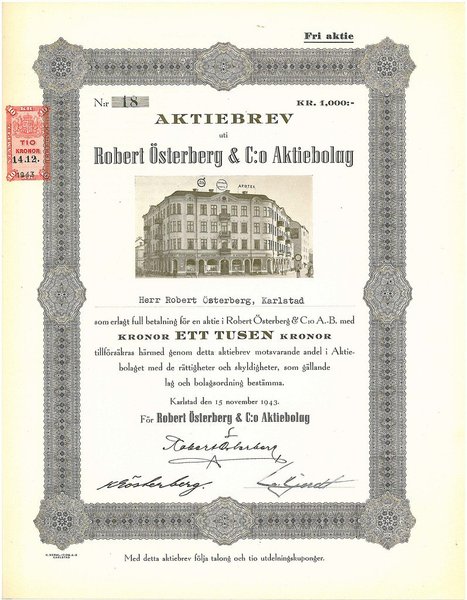 Robert Österberg & Co. AB, 1.000 kr, 1943, Karlstad, Referens: GA.3644, bild