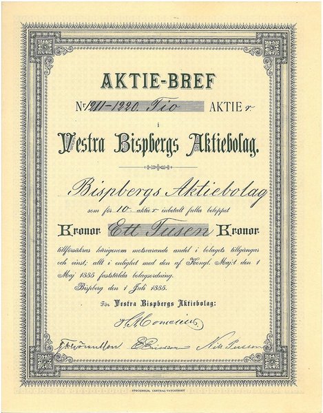 Vestra Bispbergs AB, 1.000 kr, 1885, Bispberg, Referens: GA.5116