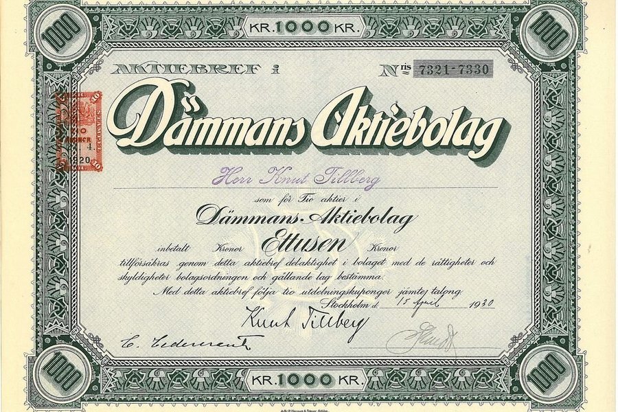 Dämmans, AB , 1 000 kr, 1930, Stockholm, Referens: GA ----, dek