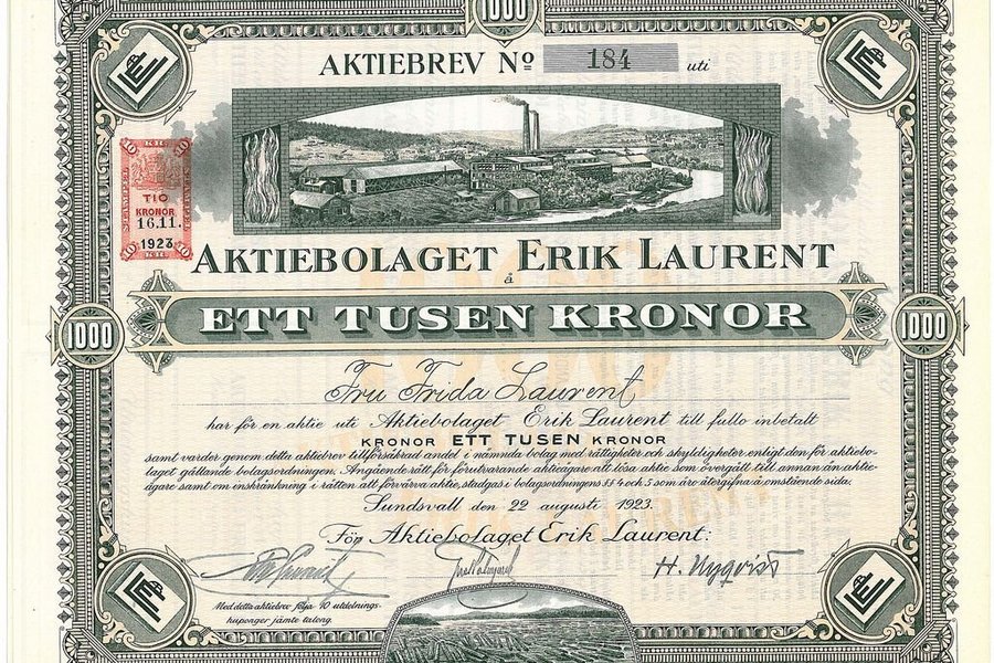 Erik Laurent, AB, 1 000 kr, 1923, Sundsvall, bild