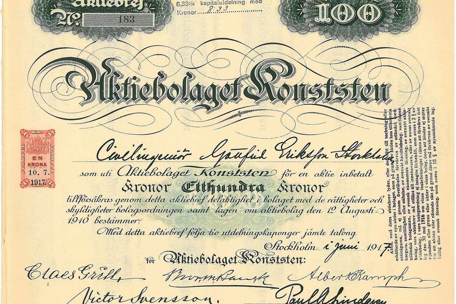 Konststen, AB, 100 kr, 1917, Stockholm, Referens: GA.2253