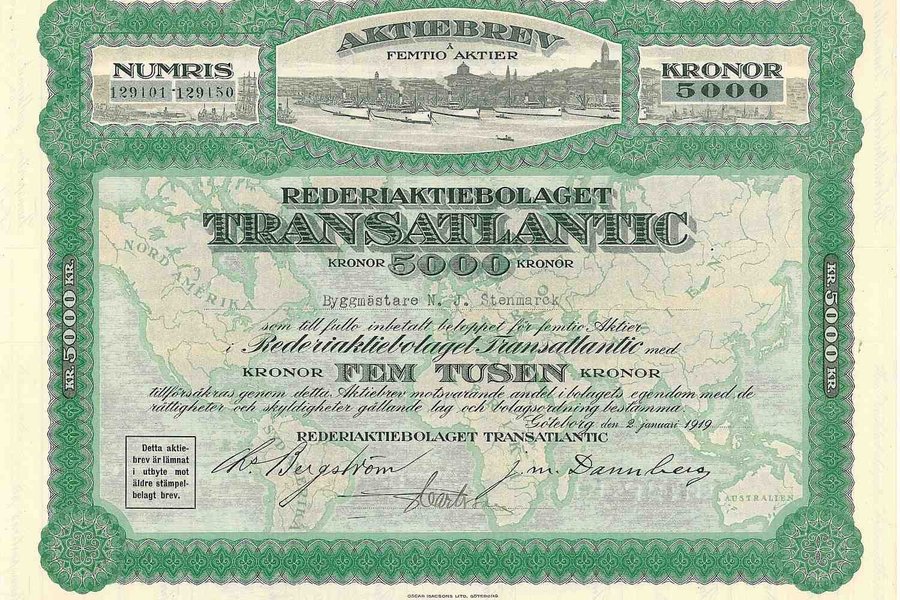 Rederi AB Transatlantic, 5.000 kr, 1919, Göteborg, Referens: GA.3570, bild