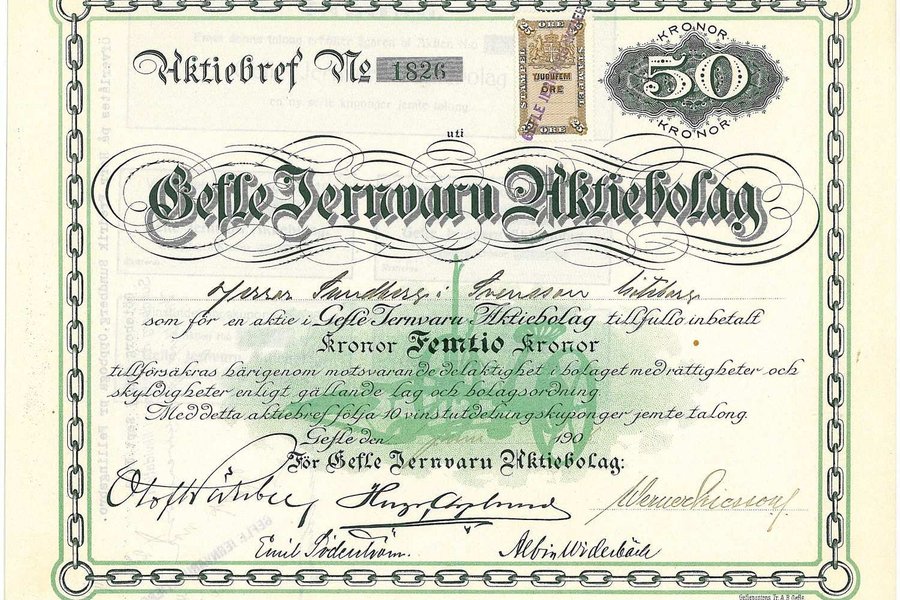 Gefle Jernvaru AB, 50 kr, 1908, Gävle