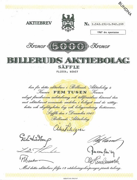 Billeruds AB, 5.000 kr, 1967, Säffle, dekorativ, makulerad