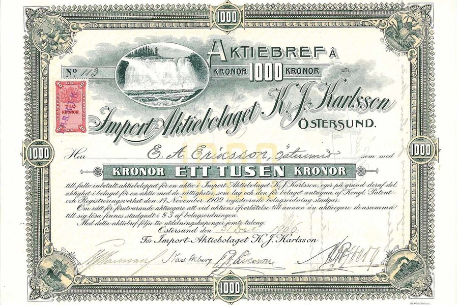 Import AB K. J. Karlsson 1.000 kr, 1906, Östersund,