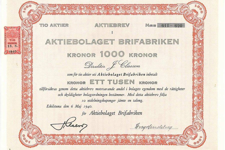 Brifabriken, AB, 1.000 kronor, 1940, Eskilstuna
