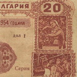 Leva, uitgegeven op 20 september 1943. De gelijktijdige aanwezigheid van beide talen maakt het een zeer duidelijk voorbeeld van een internationaal financieel instrument uit die periode.