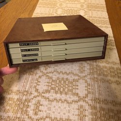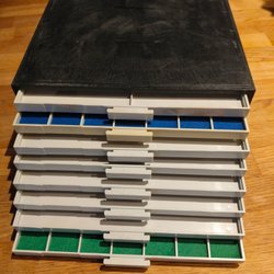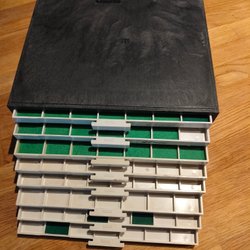 Myntskåp Lembit i plast. 8 lådor med fast inredning. Mått i cm c:a: 25,5 x 25,5 x 12,3. Vikt c:a 2,9 kg. Lådornas inredning: 3 lådor med 5 x 5 fack c:a 45x45 mm; 2 lådor med 7 x 7 fack c:a 31x31 mm; 3 lådor med 8 x8 fack c:a 26x26 mm. Sammanlagt plats för 365 mynt. Gamla Dymo-remsor på lådorna - kan lätt avlägsnas. OBS - endast avhämtning!