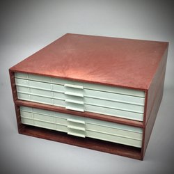 Värdemyntsförvaring för 12 mynt i blått samet och trälåda. Presentförpackning.