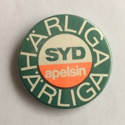 Knapp = plåt- eller plastknapp med badgenål eller säkerhetsnål
