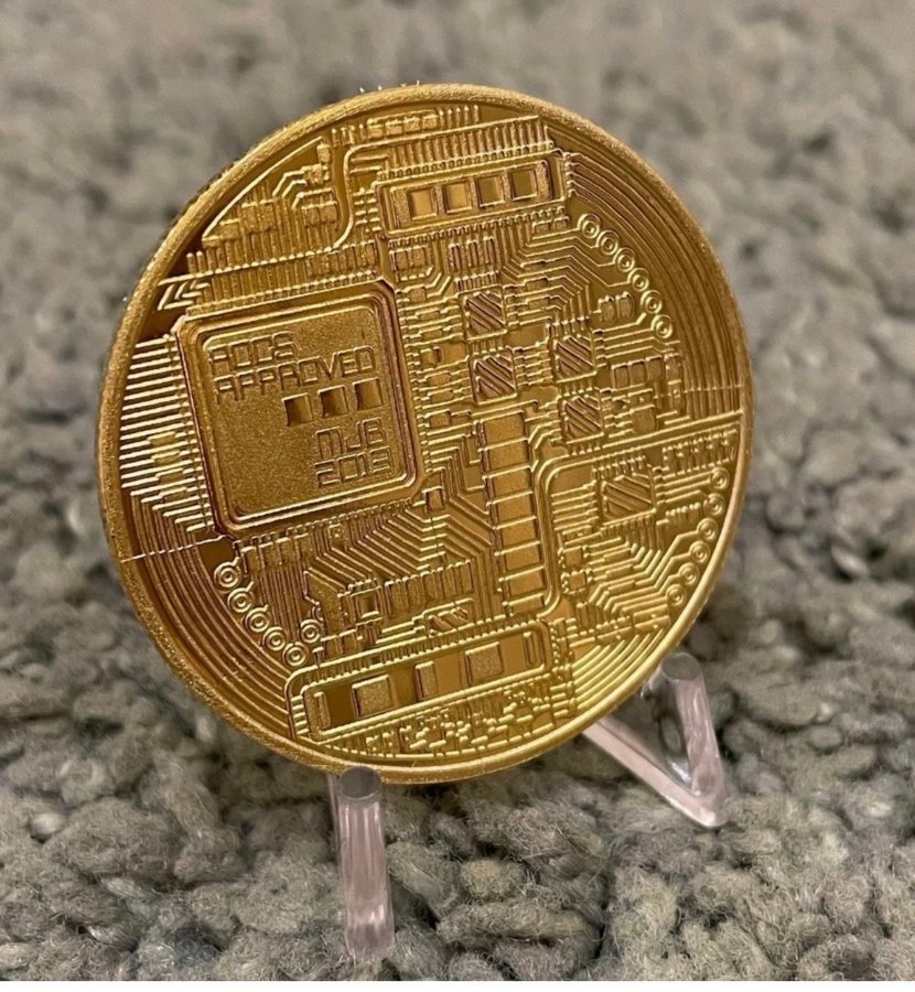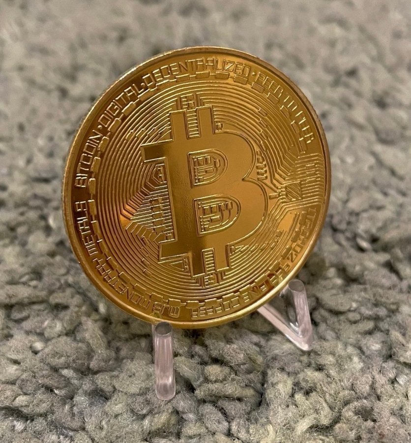 En detaljrik och stilren samlarmynt med Bitcoin-loggan. Tillverkad i metall.