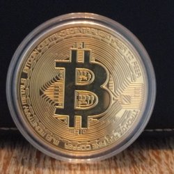 En detaljrik och stilren samlarmynt med Bitcoin-loggan. Tillverkad i metall.