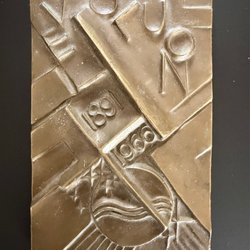 Medaljong från Abaye Benedictine De Fecamp. Årtalen 658 och 1790 är angivna på medaljongen. På baksidan finns en bild av en Benedictine flaska.