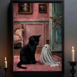Canvas Poster Katt Spöke Popcorn Pumpor Halloween 40 × 30 cm