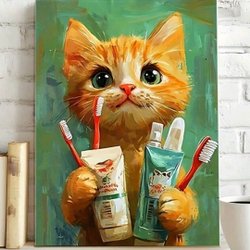 Canvas Poster Katt Spöke Flyga Kvast Halloween 25 × 20 cm