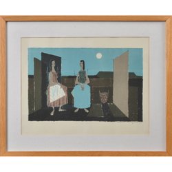Max Walter Svanberg (1912-1994), färglitografi med bladguld, signerad, numrerad 71/125, 26,5 x 23 cm (50 x 41). Verket har titeln ”Under solens kjolar”. Ram med bruksslitage.