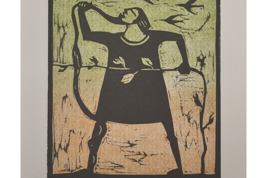 Linoleumsnitt av Åke Holm, blyertssignerad nederst t h, onumrerad. Motivet mäter ca 20 x 17 cm, oramad. Tryckt 1980 i en upplaga om 250 exemplar. Litteratur: Höganäs Museum nr 262.