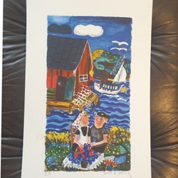 Ett vackert konstverk med ett motiv av en väg med träd i ett vinterlandskap. Konstverket är numrerat 137/210 och signerat Karl Wihlborg. 29x38 cm.