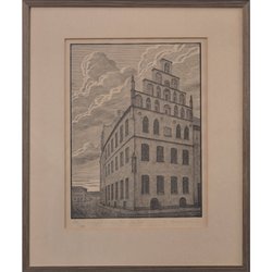 Färglitografi av Lis Kläpp, signerad, betitlad ”Dunge” och numrerad 274/320. Motivets mått är 19,5 x 23,5 cm, oramad (bladet större). Smärre marginalfläck.