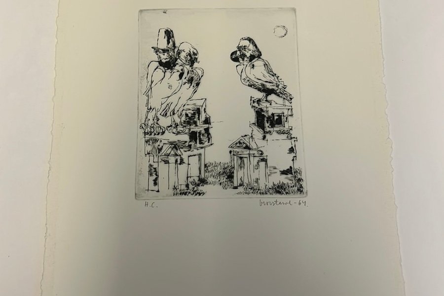 Bror Stawe Etsning. Signerad och daterad-64. Bladmått 24*20 ( tejprester i marginalen )