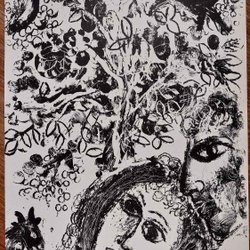 Marc CHAGALL Originallitografi, composition “Devant Le Tableau”