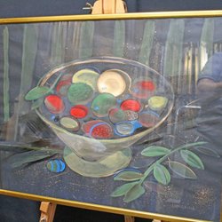 Ej examinerad ur ram - gäller inglasade verk. Ramslitage kan förekomma i varierande grad. Gäller ej akryl målningar på duk/canvas.