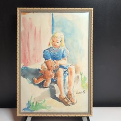 En vacker tavla med motiv av en kvinna som blåser såpbubblor. Signerad nedtill. Det finns tendens till ev fuktskada nere till höger vid signaturen. samt fläckar/skavmärken på ramen. Ramens mått är ca 30x50 cm.