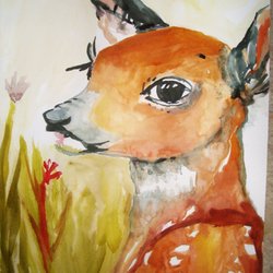 Målning föreställande en häst. Konstverket är signerat M. Lindberg 2020. Målningen är utförd med bläck och akvarell på papper.