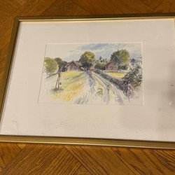 En gammal handmålad äkta målning med lantligt motiv med en fin ram. Signerad M. Johannsson.