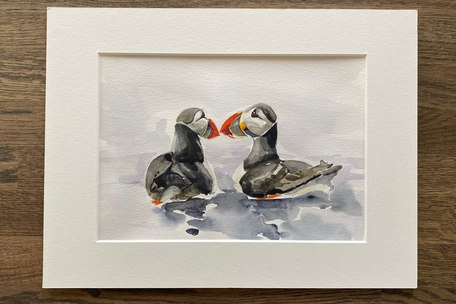 En akvarellmålning gjord av mig själv. Storlek målning 21x29, storlek själva passepartout är 30x40cm. Målningen är monterat i en vit passepartout utan ram.