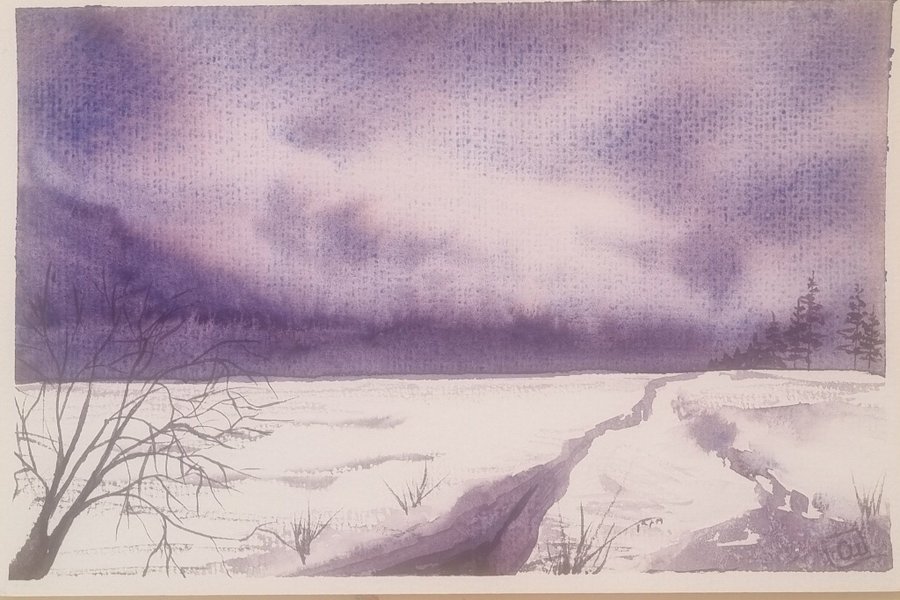 Akvarellmålning Vinterlandskap