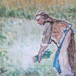 En akvarellmålning med blommor.