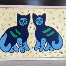 Färgglad målning med ett ansikte i mitten.