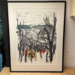 Tusch på baksidan ”FLODLYCKTA M RAEE”. Blyerts på ramen ”Volvo konstlotteri 2010”. Mått 86x59