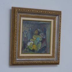Ett intimt och trotsigt porträtt av en kvinna som sitter i stilla styrka. Blåmärkena i hennes ansikte vittnar om uthållighet snarare än nederlag, medan de djupa gröna och blå tonerna ramar in henne i en känsla av motståndskraft, värdighet och orubblig närvaro.