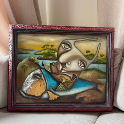 En abstrakt tavla som fångar blicken med sina texturer och färger. Denna unika konstverk är en blandning av olika material och tekniker, vilket skapar en spännande visuell upplevelse. Perfekt för att ge ditt hem en modern och konstnärlig touch.
