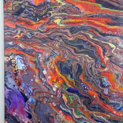 Akryl fluid art är en abstrakt impressionistisk konstformdär färger görs mer flytande med hjälp av olika medier och sedanmanipuleras på duken med metoder som tryckluft, palett knivar ochför hand. Varje verk är unik och kan intereplikeras.