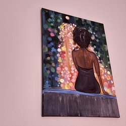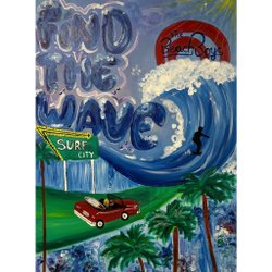 Abstrakt maleri med grønne, gule og røde farver. Maleriet er signeret på bagsiden cmp, navn "underwater emotion". Incl ramme er målene 64 x84 cm
