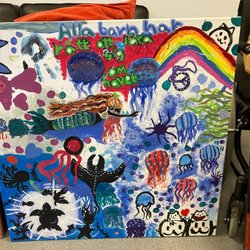 Ungdom från Mullsjö Kommun har målat denna tavla för att auktioneras ut till högstbjudande för Musikhjälpen 2025.