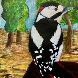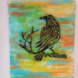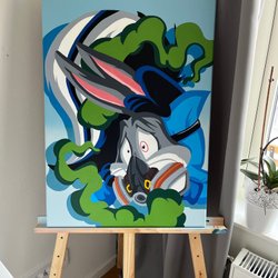 Målning, akryl på canvas, av T. Aronson, 7 år, 2025.