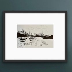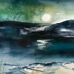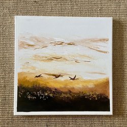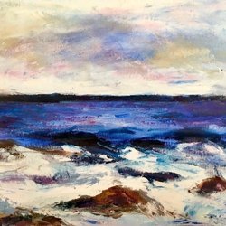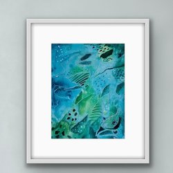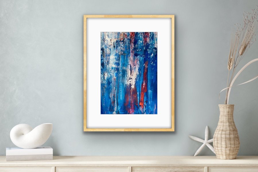 En abstrakt akrylmålning i blåa och röda toner. Skapar en intressant visuell effekt. Oramad, signerad. Målad på tjockt akrylpapper. Lätt att rama in i ramar som finns i handeln.